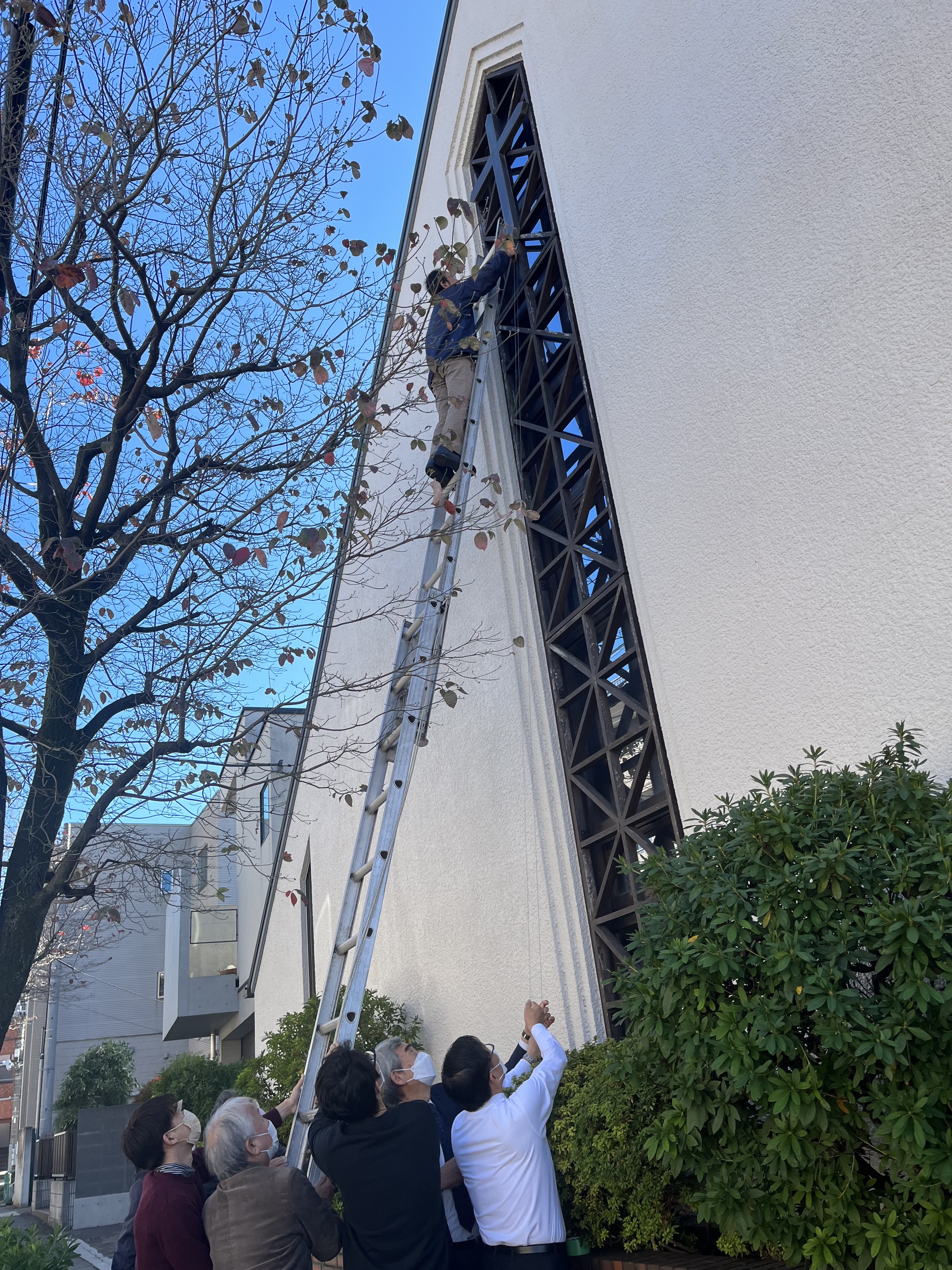 11月27日の礼拝後に壮年会を中心に取り付けました。その時の様子です。